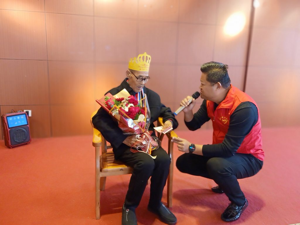2021年10月10日,天空下着小雨。志愿者刚走到刘明全爷爷家门口,就听到了屋子里的欢歌笑语声。今天正好是爷爷97岁生日,亲朋好友都来庆贺。志愿者带着龙越慈善基金会的生日礼金来给爷爷庆生。一进家门,爷爷说:“你们今年来了三次”。自今年接手綦江片区,确实是第三次来到爷爷家。思维这么清晰,真不像个97岁的老人。